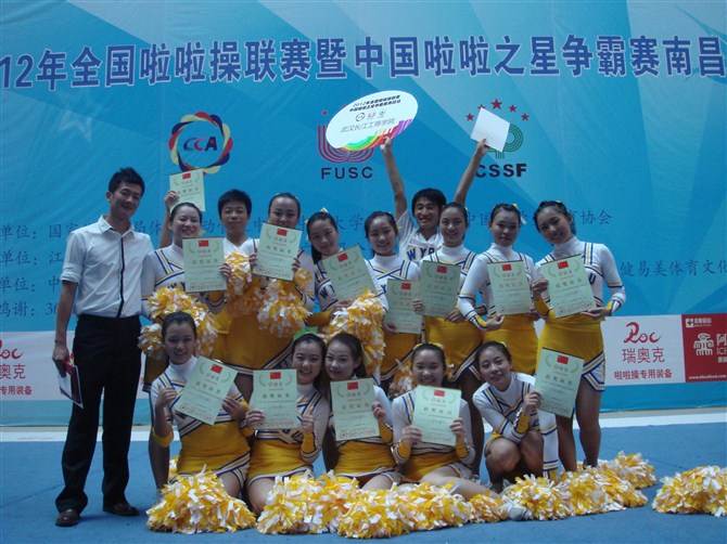 我校飞扬舞蹈啦啦队以突出的表现荣获啦啦操大学组花球
