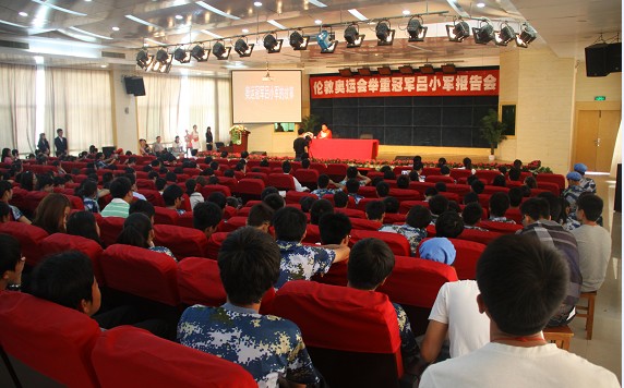会上,与冠军吕小军的对话结束后,在场学生蜂拥上台,抢着与冠军合影、要签名。“我现在激动的一句话都说不出来了,吕小军坚持不懈、不断超越自我的精神,鼓舞着我,很受用。”拿到了冠军签名的大一新生杨世灵说道。