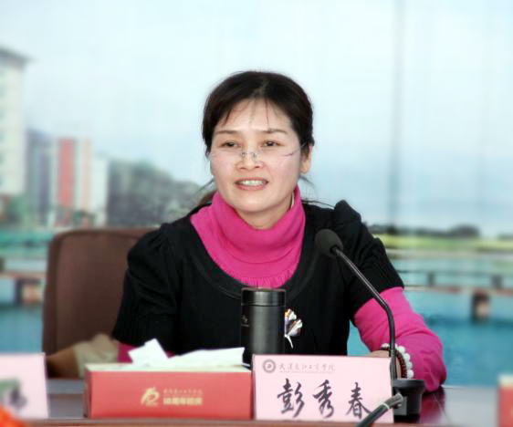 图为校董事长彭秀春女士在会上发表讲话 摄影:林倩