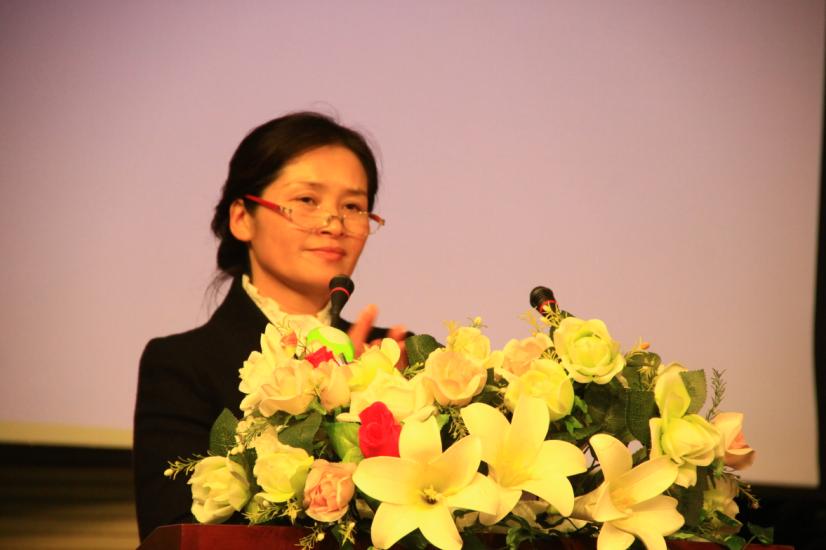图为校工会副主席苏红做工会报告 摄影:崔婷