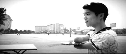 图为:石承浩在打乒乓球