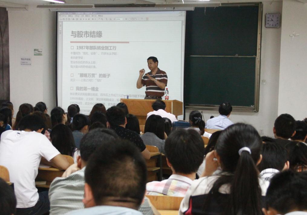 于河田总监介绍了中国股市的发展历程及投身股市的机会和风险。“中国股市走过七“牛”、七“熊”,因此投身股市存在经营风险、个人风险和人生风险”,他告诉学生们,在股市巨大的诱惑后面隐藏着巨大的危机,并生动地讲述了上海滩证券三猛人管金生、尉文渊、阚治东的人生因股市而沉浮的故事。