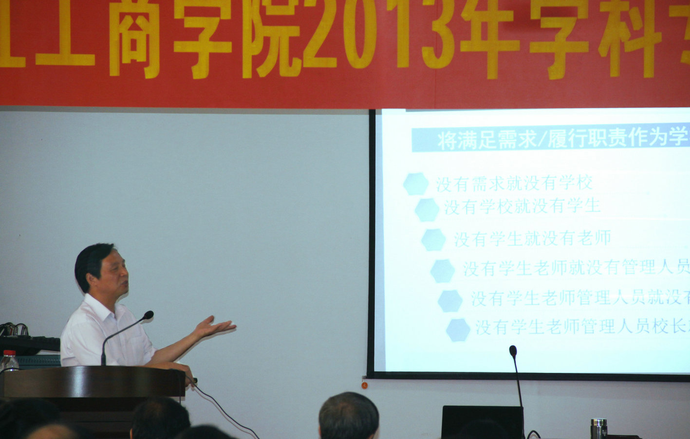 张金隆首先列举了今年学校的几件标志性工作:厉无畏先生任我校荣誉校长、武汉轻工大学支持学校挂靠招收专业硕士生、我校与科廷大学合作办学、今年暑期新进一批具有博士学位的教师、肖志雄博士破格晋升教授等。他指出,学校近年来着力加强各项建设,推动内涵式发展,取得了明显的成绩,他对学院的发展充满信心。同时,他又站在学校发展全局的高度,对学校发展中存在的主要问题进行了分析,他要求各单位要加强自身建设,勇于担责,主动谋划,寻找出路。