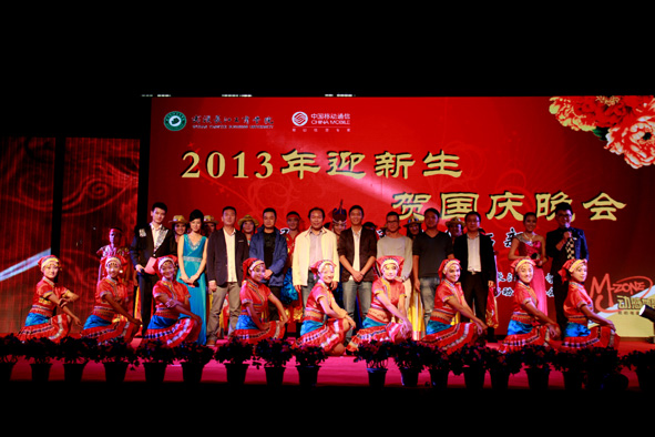 新闻中心讯(记者 饶静 尹诚)9月29日晚7点,我校2013年迎新暨国庆晚会在校田径会场上举行。我校党委书记陈伟、校长助理张俊、学工部部长陈义文、团委书记吴艳等和2013级新生及部分老生一同观看了晚会。