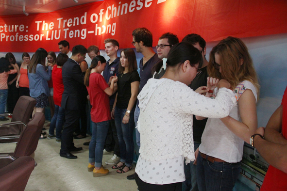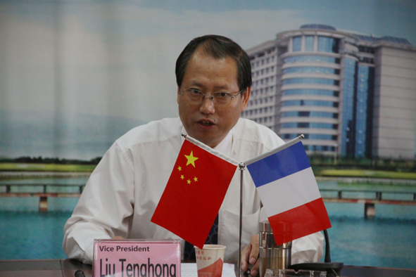 “有朋自远方来,不亦乐乎”,我校副校长刘腾红教授代表学校对法兰西商学院学生团的到来表示热烈欢迎,他表示,法国学生的到来对促进两校学生交流和两校的合作起到了积极作用。我校学生代表还为法国学生们戴上了我校校徽。