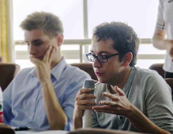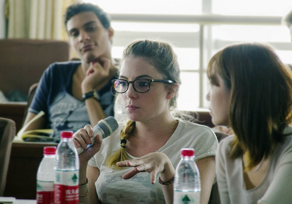 图为法国学生向企业家提问 摄影:李鳌