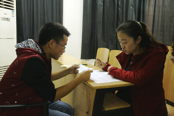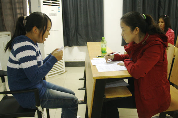 “这个项目主要是为了让每个外语专业的学生,都能够说出一口流利的英文,真正做到学以致用。”肖静介绍,“该项目分成四个阶段进行,第一学期主要是为学生纠正语音,第二学期是英文朗读,第三学期是美文背诵,第四学期是对话交流。本学期从第7周开始测试学生的语音水平,第8周至第13周期间,每周四下午都会一对一的对学生进行辅导,纠正7、8个音标,并及时进行测试。第14、15、16周是重难点音标强化阶段。到第17周,力求每个学生都能准确无误的读出所有音标,发音及格。”