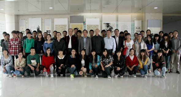 图为我校领导与书法班学生合影留念 摄影:孔贵骑