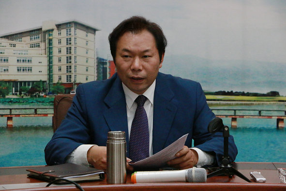 图为新任纪委书记向太斌同志在会上讲话 摄影:李鳌