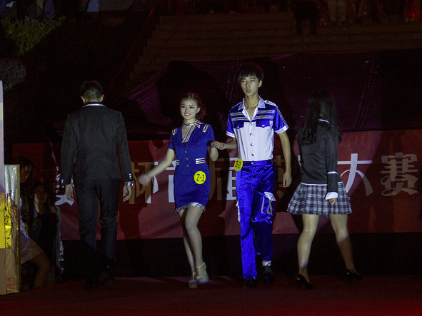 第三轮的比拼“动情时刻”将整个比赛带到最高潮,所有的男女选手被分为9个小组,他们穿着精心设计的婚纱和礼服,共同携手走到舞台的前面,洁白的婚纱,蓬松的裙摆,让观众为之欢呼雀跃;“新人”相拥,男生向女生当众求婚,公主与王子的唯美爱情故事,在铺着红色地毯的T台上浪漫呈现,给在场的观众一场华丽的视觉盛宴。