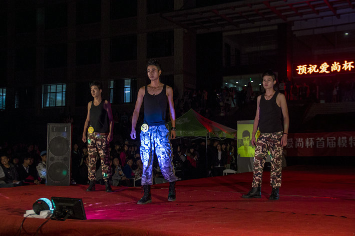 在第一环节“清新魅影”中,只见穿着清新运动装的模特们在动感的音乐下,走着猫步来到前台,以不同的姿势闪亮登场,男模特强健的体魄与女模特曼妙的身姿,引得在场的观众高呼呐喊。在第二个环节“欲望都市”中,模特们展示的是备受观众喜爱的都市情侣装、空姐职业装、护士服等服装作品。