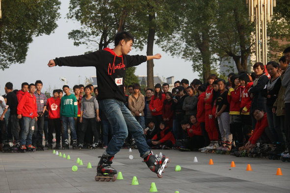 新闻中心讯(记者 陈俊 见习记者 吴田芳)11月30日上午,武汉长江工商学院轮滑协会在该校综合楼门前举办了第四届高校轮滑邀请赛。比赛邀请了武汉大学轮滑社、华中师范大学轮滑社、湖北工业大学轮滑社等30多所高校轮滑社以及武汉WFT明星队、武汉佑铭平花队两个俱乐部,二蒙军团、轮舞极限等轮滑爱好者协会参加此次比赛。