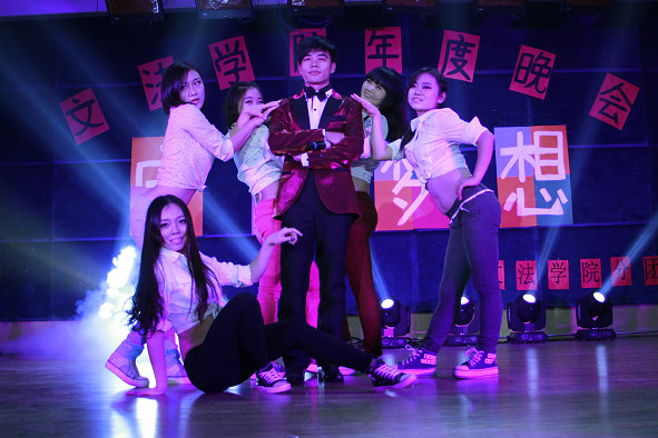 此外,藏族学生朋毛多杰演唱的《路人情歌》以真挚动人的情感打动了在场观众的心,许多人都纷纷上台为他献哈达。而文法学院学生会带来的小品《黄家湖特工队》可谓让观众大饱眼福,演员搞怪的肢体动作,诙谐台词和表情,逗得场下观众捧腹大笑。