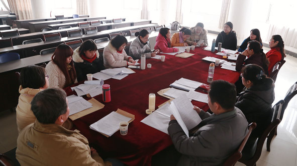 图为第一代表团围绕两个工作报告和学校2013年工作要点进行分组讨论 摄影:林倩