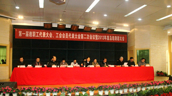 最后,向太斌副书记宣布,第一届“两代会”第二次会议暨2013年年终总结表彰大会已经圆满完成了各项议程胜利闭幕。他希望广大教职工在新的一年里,以高昂的斗志,满腔的热情,坚韧的毅力投入到新年的工作中,并代表学校领导班子,衷心祝愿全校教职工工作顺利、身体健康、阖家幸福、万事如意。