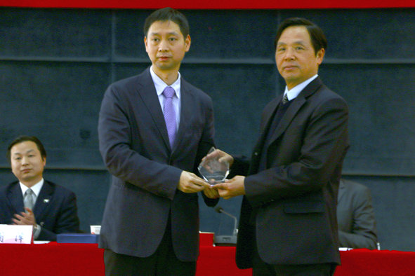 图为张金隆校长、黄哲先生代表两校互赠纪念品 摄影:胡乐