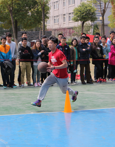 最后进行的技巧项目比赛也同样激烈,每位选手需完成2次运球投篮,并依次越过途中的障碍,若每项任务未完成则时间均加2秒,最后用时短者获胜。来自经外学院的李铭顺利完成所有任务,以15秒的时间斩获冠军,而文法学院的王广以16秒40获得第二名,文法学院的胥访以16秒50获得第三名。