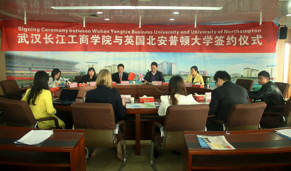 新闻中心讯(记者 陈俊)“学费少、性价比高,在本校学习就能享受国外的优良师资和优质教学资源”,4月2日上午,在武汉长江工商学院第一会议室,英国北安普顿大学商学院院长Dr.Mairi Watson来该校交流访问,并与该校签署了合作备忘录。武汉长江工商学院校长助理左宗文,管理学院常务副院长李明,电子商务学院副院长魏华,经济与商务外语学院副院长刑慧茹,国际合作与交流处副处长马冬玲出席会议,来自以上学院共40余名学生参会。