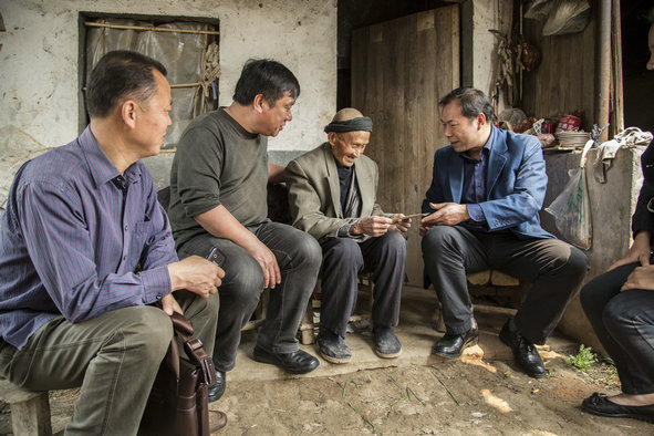 花彭村的特困户彭生荣老人因小时候患小儿麻痹症而导致残疾,他的父亲在抗美援朝战争中牺牲。谈起父辈的光荣事迹,彭生荣激动万分,“那时候抗美、抗日,我的父亲参与了多场战争”。彭生荣还和陈伟聊起了战争年代的故事。陈伟书记感慨地对老人说:“您们父辈为党和人民作出了牺牲,党和政府不会忘记您们。”他还叮嘱老人一定要照顾好身体,和老伴一起幸福地安度晚年。