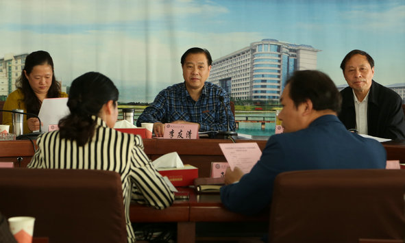 新闻中心讯(记者 刘特 史蓉珍 王延飞 刘琪 陶冬 王俊媛)4月29日,由湖北经济学院原党委副书记李友清任组长的湖北省高校党建和大学生思想政治教育督导巡视组(第八组)来武汉长江工商学院检查指导工作。该校领导彭秀春、陈伟、向太斌、陶梅生、左宗文、张俊、王程军及学校相关部门负责人、师生代表参加了汇报会,会议由党委书记陈伟主持。