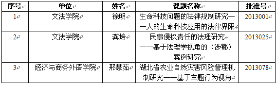 湖北省2013年度社会科学基金项目立项清单