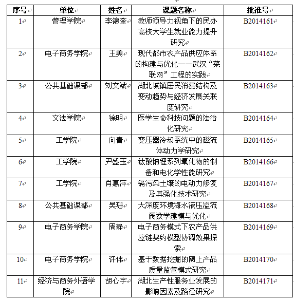 2014年度湖北省教育厅科学研究计划项目立项清单