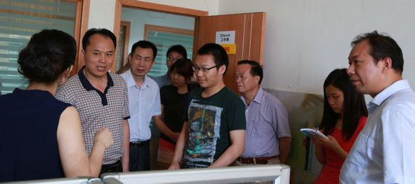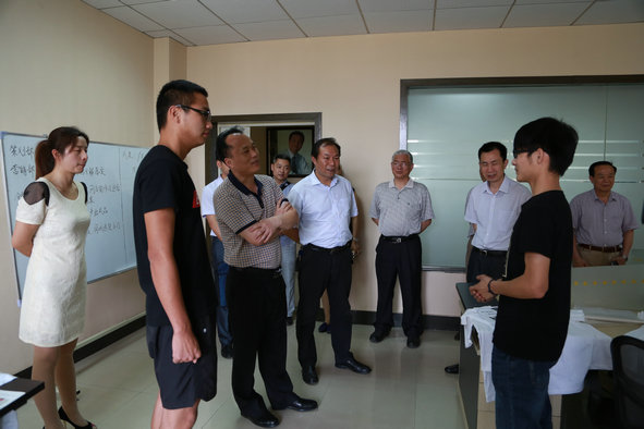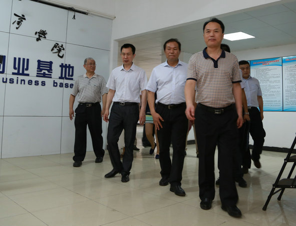 图为张金元一行在我校大学生创业基地视察 摄影:金晶