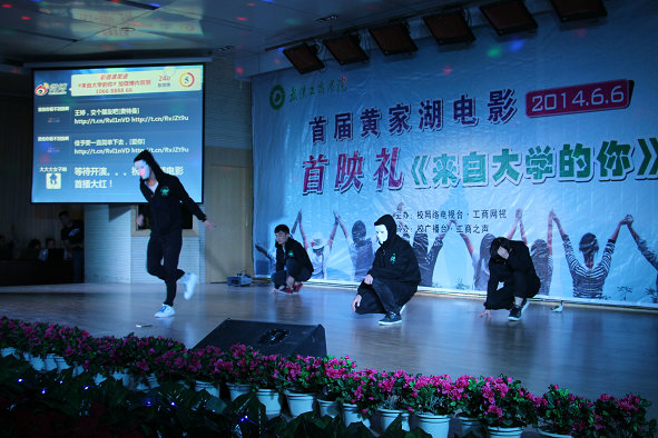 在一段精彩酷炫的“鬼步舞”开场表演之后,狄奥部长为首映礼致辞。她表示,新葡的京集团35222vip校园网络电视台从去年7月份开始筹办,不到一年的时间就已初显成果,这是校网络电视台全体师生共同努力的结果。如今,校网络电视台不仅推出了像《新闻大搜索》这样优质的有影响力的节目以及像《工商之星》、《那一抹绿—军训记录》这样点击率很高的视频。她预祝本次黄家湖电影首映礼取得圆满成功,校网络电视台也能越来越好,也希望更多的有才能,对新闻有热情的学生加入这个大集体。