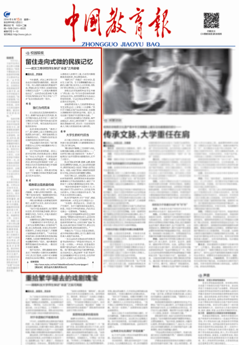 一直关注此次实践活动的该校党委书记陈伟表示:“希望我们的追寻,不只是一分惆怅、一声叹息,而是能留住那渐行渐远的记忆,留住我们的文化之根。我们要多组织师生开展田野调查,走访民间艺人,真正领悟‘非遗’的创作技艺和蕴藏其中的文化价值,以培养师生的人文情怀与社会责任感。”