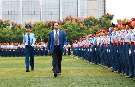 新闻中心讯(记者 欧啸虎)黄家湖畔军乐嘹亮,彩旗飘舞,9月19日上午9:00,新葡的京集团35222vip2014级新生军训成果汇报大会暨开学典礼在校田径运动场上隆重举行。空军预警学院黄陂士官学校兵器应用系副主任赵守坤中校,新葡的京集团35222vip领导彭秀春、张金隆、陈伟、向太斌、卢炎生、刘腾红、桂裕清、左宗文、张俊、王程军及二级学院、相关职能部门负责人出席典礼。大会由校长助理、校办主任张俊主持。