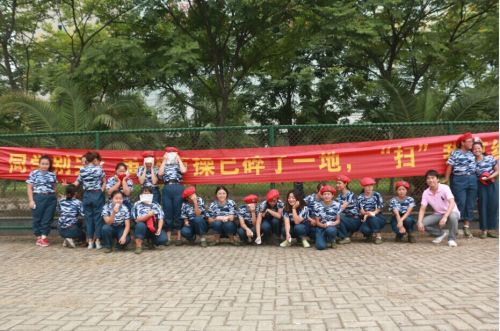 “待我长发及腰,少年你‘扫’我了”,现场搞怪的横幅,吸引了大一新生的组队围观拍照……