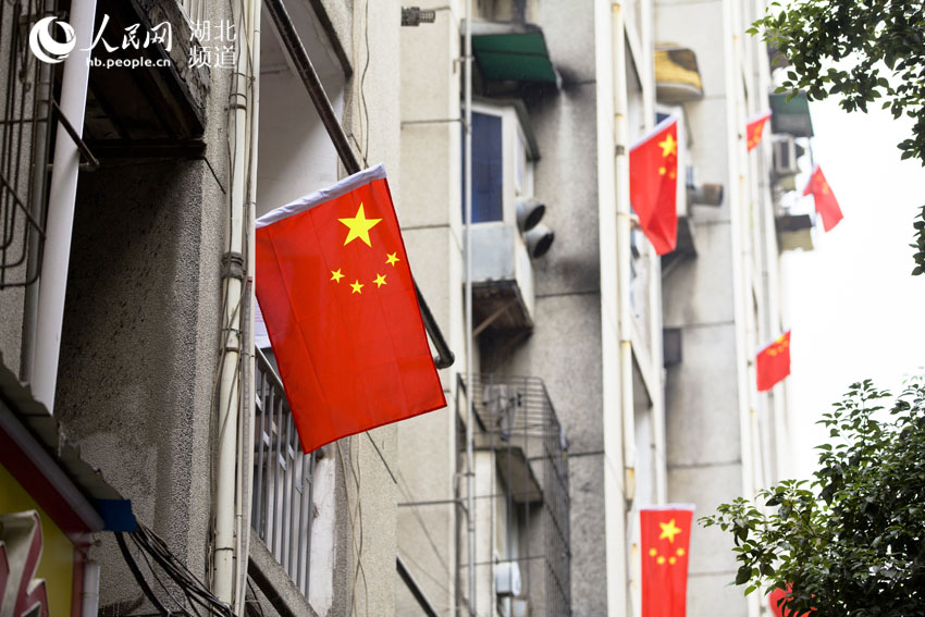 上午11点,居民楼一面面鲜艳的五星红旗迎风飘扬,为祖国65华诞增添了一道靓丽的风景。