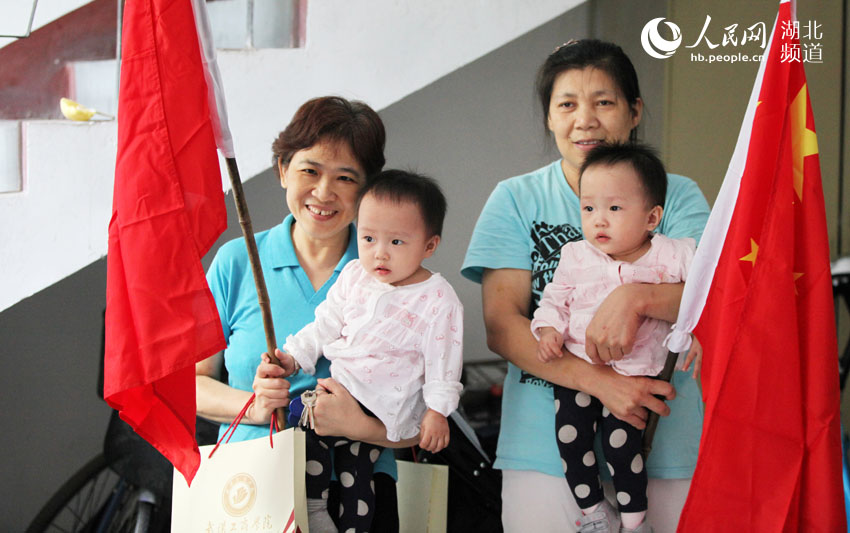 人民网武汉9月29日电 (饶茜)9月29日上午,新葡的京集团35222vip少数民族大学生身着色彩绚丽的维吾尔族、蒙古族、哈萨克族、畲族等少数民族服装,来到武汉市水果湖街茶港社区,给社区居民送来了2500面国旗,现场洋溢深深的民族情谊和浓浓的爱国热情。
