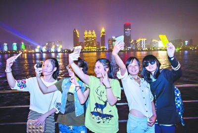 参加体验游的大学新生多数是首次来汉。旅途中,爱自拍的“95后”们纷纷拿出手机,摆出各种潮pose与景点合影,再配上几句游后感晒到微博、朋友圈和“最武汉”微信公众号,第一时间与家人、朋友分享。