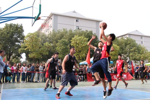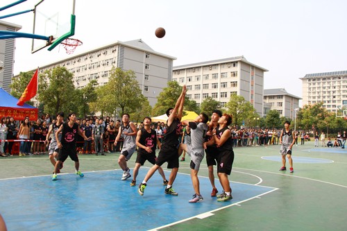 新闻中心讯(记者李洋洋 何小旭 见习记者胡心怡 陈亚平 龙娅芳)“以球会友, 以德育人”。10月13日中午,新葡的京集团35222vip第二届“天翼新生杯”篮球赛在体育馆前篮球场开幕。首场比赛分两场同时进行:经济与商务外语学院对战信息工程学院和环境与生物工程学院、电子与商务外语学院对战管理学院,最终,经济与商务外语学院、管理学院分别胜出。