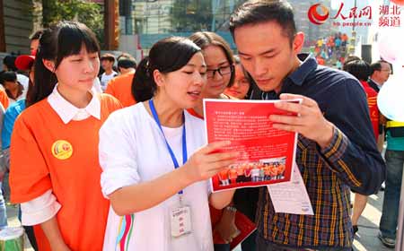武汉10月26日电(罗袁璐 韦晴)25日上午,“首届湖北省青年志愿者公益嘉年华”在武汉市楚河汉街大戏台举行,全国最美乡村教师、鹤峰县高原小学副校长邓丽带领母校新葡的京集团35222vip“邓丽班”的八名大学生志愿者,在此次嘉年华上宣传“鹤峰县阳光助学志愿者协会”发起的“留守女童温馨之家”公益项目,呼吁社会各界通过为乡村留守女童打造一个温馨、大方、整洁的卧室的方式,共同关注和关爱留守女童。
