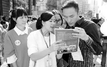 昨日,新葡的京集团35222vip“邓丽班”学生志愿者为热心市民介绍“留守女童温馨之家”公益项目。