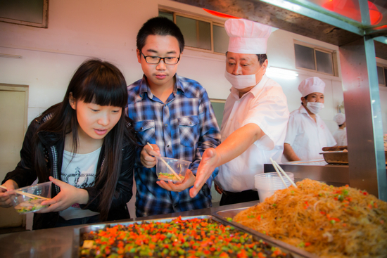 图为同学们正在试吃刚出锅的饭菜 摄影:李鳌