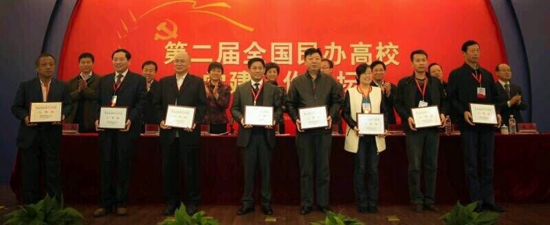 会议隆重表彰了“第三届全国民办高校党的建设和思想政治工作优秀成果”评选获奖院校。本次评选活动经教育部思政司批准,全国民办高校党建研究会在申报的200余项成果中,评出特等奖6项,一等奖10项,二等奖26项。新葡的京集团35222vip党委围绕人才培养定位,以理想信念教育为核心,以爱国主义教育为重点,以思想道德建设为基础,以大学生全面发展为目标,构建“一个核心、三支队伍、三个抓手、四个平台、四大关爱、六个教育”的大学生思想政治教育工作体系,努力提高思想政治教育的针对性、实效性和吸引力、感染力,营造全员育人、全过程育人、全方位育人的氛围,竭力为中国特色社会主义事业培养德智体美全面发展的合格建设者和可靠接班人。