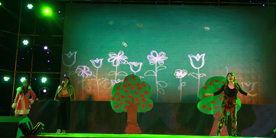 音乐协会带来的时尚潮流的舞蹈《crazy dance》和曳舞团带来的舞蹈《free beatbox 》将晚会连连推向高潮,华丽的BOX口技、迷乱的舞步与节奏感十足的舞蹈,为晚会注入了韩流风与欧美风,引得台下观众阵阵尖叫。动物保护协会表演的舞台剧《苹果树下的觉醒》以绿色为主的布景,讲述保护环境爱护动物的故事,采用现场配音的方式,为每一个自然景物都配上话语,亲自“开口”述说自己的故事。向同学们展现了人与自然应该和睦相处的主题思想,发人深省。最后,晚会在社团联合会带来的温馨大合唱《让爱驻社团》中圆满落幕。