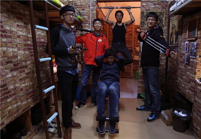 寝室的6个男生分别来自湖北、浙江、湖南、江苏四个省份,虽然认识时间不长,但是志趣相投、感情非常好,常被同学称为“中国好室友”。他们不仅吃住在一起,而且每天一起上课、上晚自习,周末还一起给寝室一起大扫除。为了大家能在寝室一起锻炼身体,室友苏宇航还购买了仰卧起坐器、臂力器等能在室内锻炼身体的器材,每天下晚自习后,大家就一起锻炼。