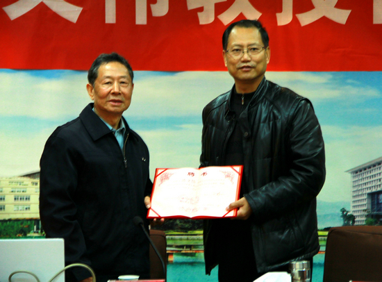 图为刘腾红副校长为陈文伟教授颁发聘书 摄影:王舒媛