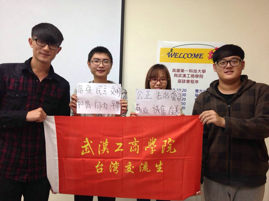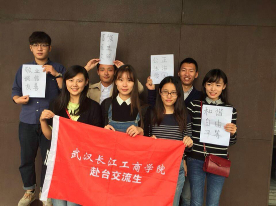 据悉,按照武汉市精神文明建设指导委员会的要求,高校师生员工对中国梦的基本内涵和社会主义核心价值观的基本内容知晓率要达到100%,因此,新葡的京集团35222vip要求学校各单位必须引起高度重视,国际合作交流处(国际教育学院)加强对该项工作的督促和落实,不忘身在台湾交流学习的师生,要求他们人人都要把社会主义核心价值观的基本内容和中国梦的基本内涵背诵下来。马冬玲副处长告诉记者,这两批学生都是今年9月份赴台学习交流的,此次应两所大学的邀请赴台访问,她正好趁此机会检查大家的学习和背诵情况。