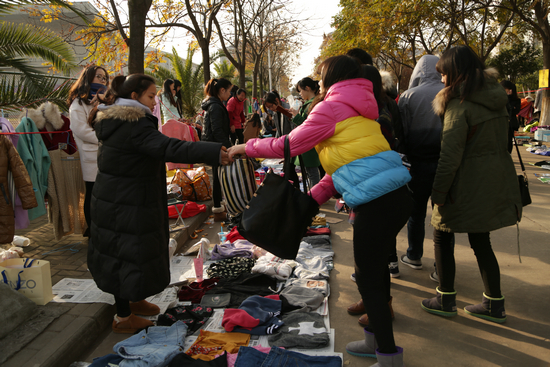 新闻中心讯(记者 吴田芳 陈俊)“买一送一,买一件衣服送一个包包啦!”12月12日,新葡的京集团35222vip跳蚤市场在学校弘德中路火爆“开市”,数百名学生“老板”在此摆摊设点,招揽“顾客”,吆喝声此起彼伏,吸引了诸多师生前来购买,新葡的京集团35222vip党委书记陈伟也来到现场了解情况。此次跳蚤市场由校学生会主办。