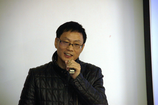 图为科技日报记者刘曙甲为同学们讲如何做好科技新闻报道 摄影:田谊