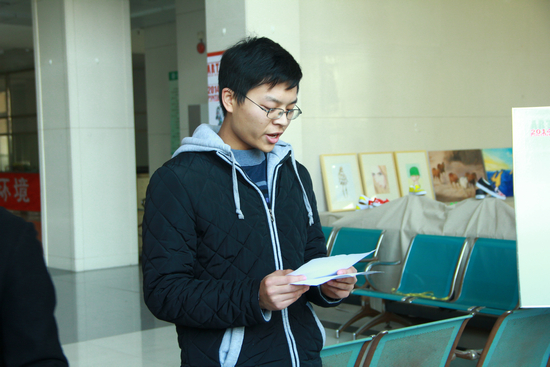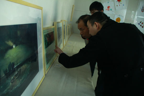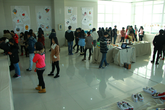 据了解,此次展览共展出包括油画、水彩、数码绘画等类型的作品约60件,作者为绘画系2011-2013级学生,展厅内设置了投票箱,大家可以为自己喜欢的作品投票。现场共卖出了3双手绘鞋,绘画系老师们还为前来观展的老师和学生送上了附有绘画系学生们手绘学校领导漫画的台历和校园系列油画明信片作为纪念。