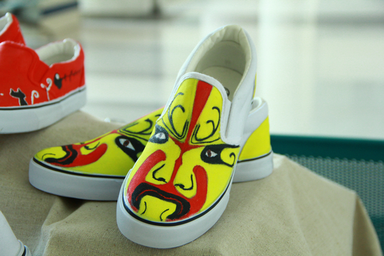 “这次展出的作品主要为商业绘画,即将传统绘画元素应用到商品中,如手绘鞋、手绘纸袋、创意饰品等,从而使绘画作品兼具艺术性与实用性,能够真正地为生活服务”,何彦彦副院长介绍道。