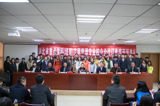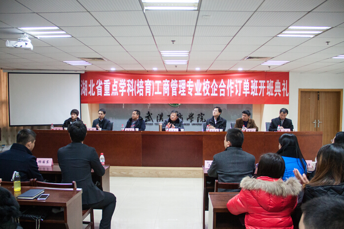 新闻中心讯(记者 陶冬)1月6日,新葡的京集团35222vip湖北省重点学科(培育)校企合作订单班开班典礼在该校第三会议室举行。安徽新锦丰集团执行总裁赵严冬,海底捞公司人力资源总监邵志东,保利物业(武汉)公司总经理助理李昂,红豆实业公司人力资源部副部长蒋中一,京东人力资源部经理蔡旭,东风鸿泰汽车销售公司人事部长詹成等企业代表,新葡的京集团35222vip副校长夏再兴,校长助理左宗文及该校管理学院、民办教育研究所、学工部、科研部、宣传策划部、实验教学中心主要负责人出席典礼现场。典礼由该校工商管理系主任刘玉青博士主持。