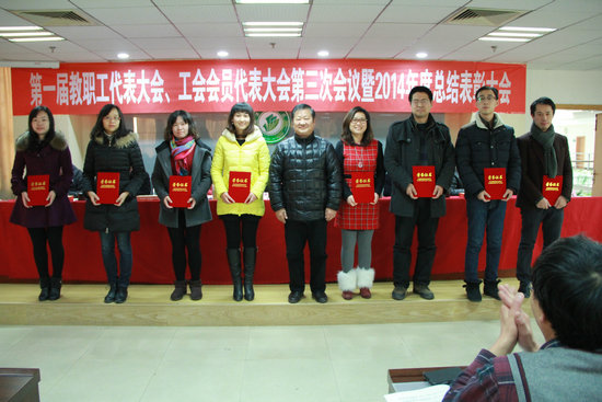 图为陈伟书记为2014年考核优秀单位颁奖 摄影:王铖焱