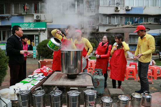一边是校青协的志愿者们在社区给老人送汤圆,另一边是校学生会和后勤管理部联合在校内开展送汤圆活动。中午11:40,学校一、二食堂送汤圆的窗口便排起了很长的队伍,热气腾腾的汤圆让师生们感受到了浓浓的节日氛围。“早在寒假期间就开始策划元宵节为老师和同学们做些什么,节前查看了天气预报发现元宵节这天天气很冷,就想到给师生们免费送汤圆,让大家在元宵佳节感受到身边人带去的温暖和关怀。”校学生会主席向永昌说。
